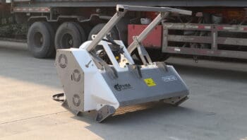 The versatile forestry mulcher was designed for shredding woody materials. The forestry mulcher excels at processing yard waste, land preparation and slash reduction. It has multiple uses for farmers, parks, golf courses, loggers, land clearing companies, ranchers, foresters, and agriculturists. The mulchers hammer blades are designed to withstand daily brush shredding, land clearing, and stump grinding operations. The forestry mulcher shreds material into a fine particle size by going over the shredded material until the desired texture is achieved. If left on the ground the shredded material is beneficial to the soil. On steep slopes the output from the mulcher is ideal for interim erosion control.