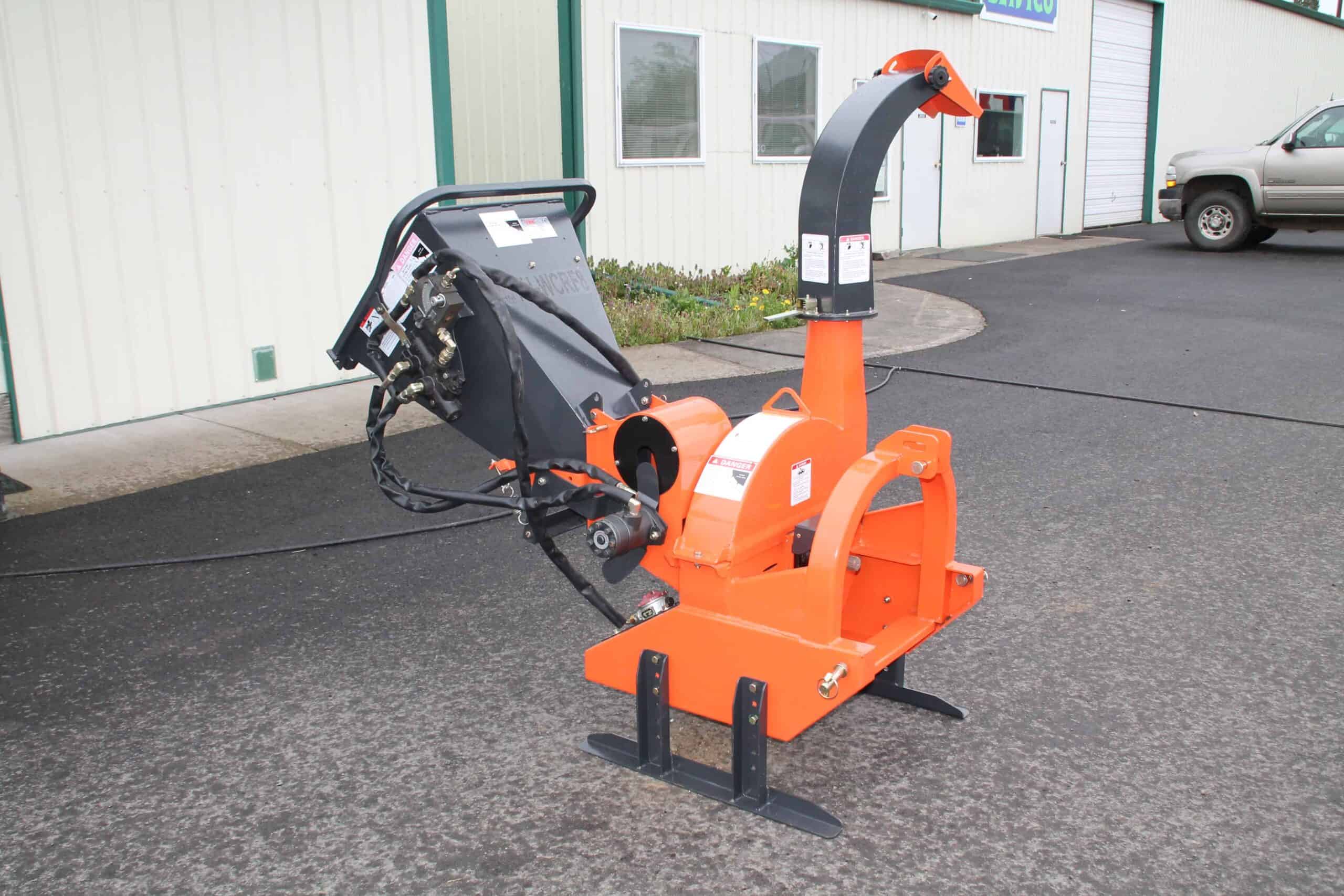 Farmer Helper WCRF8 wood chipper, with own hydraulic system, 2.5 gallon oil tank, no need to connect to tractor hydraulic system, 4 height adjustment optional legs position(2.5’’-7’’), max chipping diameter is 6’’, suitable for 18-60hp tractor.