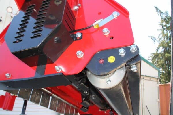 Rotor Rotation – Reverse: The rotor spins in the opposite direction as the wheels of the tractor when traveling forward. This allows the blades to shear the material as it is folded forward by the mowers. The material is then thrown up and over the rotor.